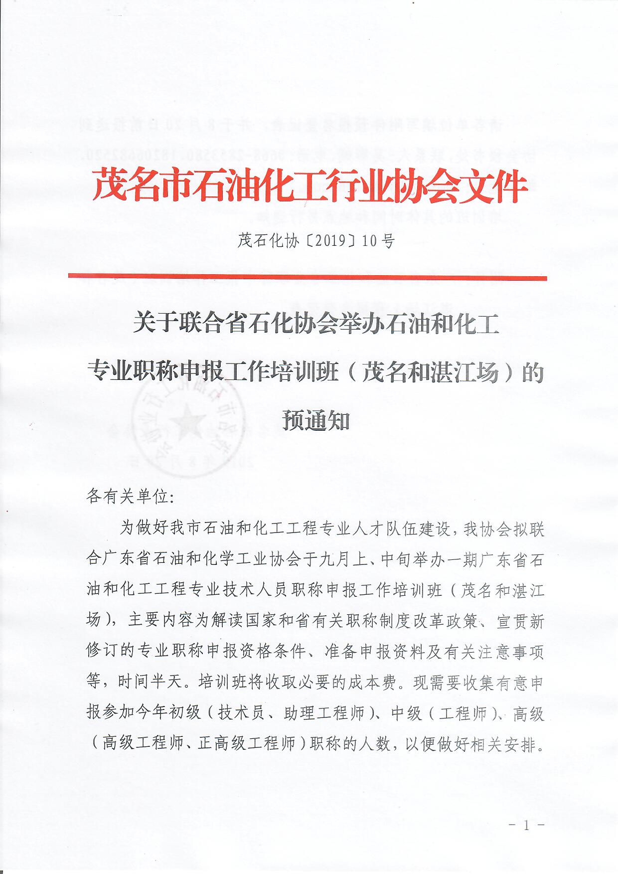 【茂石化協(xié)〔2025〕3號(hào)】關(guān)于舉辦2024年度市化工輕工環(huán)保中(初)級(jí)專業(yè)職稱評(píng)定申報(bào)培訓(xùn)班的通知